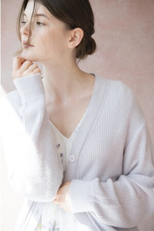 軽くサラッとした夏向けの薄手ニットを使用した、フェミニンな印象のカーディガンです。