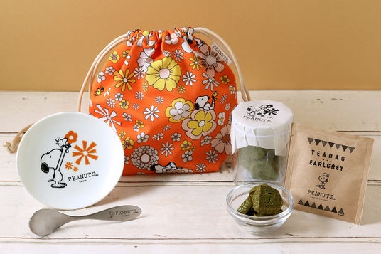 どこか懐かしいレトロを感じさせる花柄アートが施されたポーチ、飾っても可愛い小皿やスプーン、おうちでのカフェタイムを充実させる紅茶と宇治抹茶サブレを詰め合わせました。