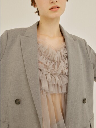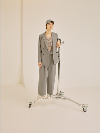 品のあるテーラードアイテムにスウェットやフリルを合わせた新鮮なスタイル。