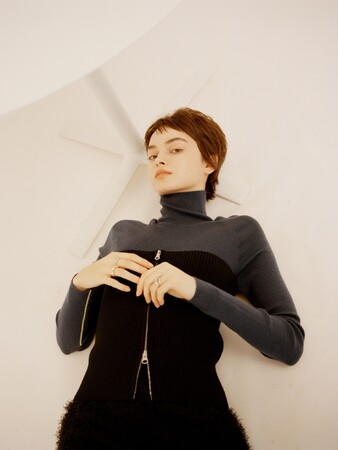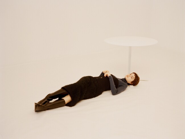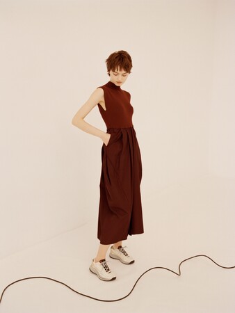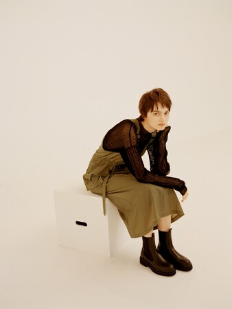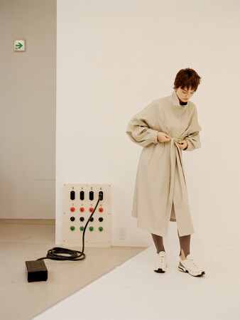 emmiらしいストレスフリーな素材はそのままに、1枚で着映えするアイテムに。