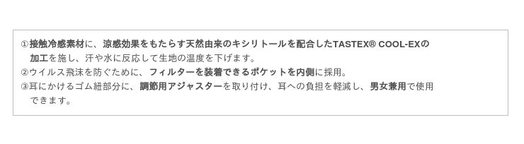 ■熱中症対策にひんやり冷たい“夏マスク”!TASTEX(R) COOL-EX」を採用し、持続的な涼感を実現!(ご参考:コックスのホームページ)