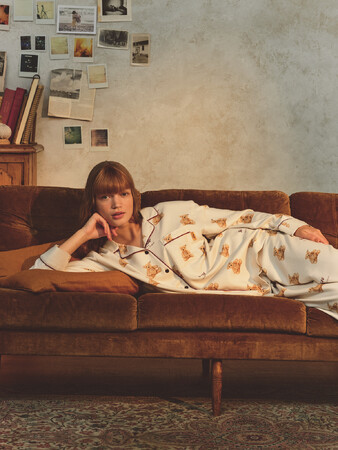 テディベア"エミリア"を、ジェラート ピケならではの優しいタッチのイラストで描き起こし、ブランドロゴと組み合わせて総柄デザインに仕上げました。温かみを感じるネル素材を使用し、赤のパイピングを効かせました。