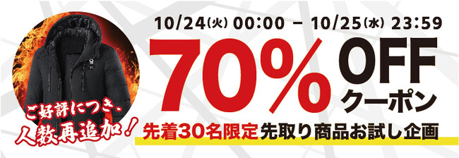 【ご好評につき人数追加・先着30名様】【70%OFF】上半身11箇所を温めるヒートジャケット「Warm-G Ultra」の「お試しキャンペーン」を「Gloture楽天ストア」で実施中【10/25まで】