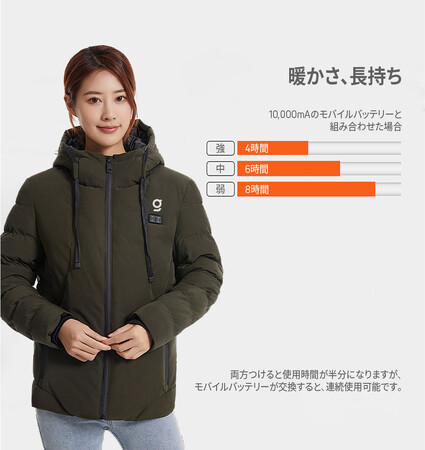 また、発熱システムにはカーボンファイバーが使われているので、電源を入れたらすぐに暖かくなるのが嬉しいところ。