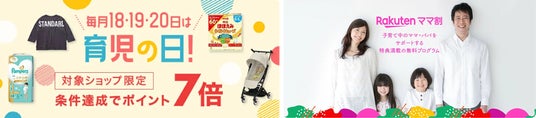 「楽天市場」は、毎月18・19・20日に開催しているベビー・キッズ用品をお得に購入できるキャンペーン「育児の日」(注1)をはじめとして、子育て世代を応援するべく様々な施策に取り組んできました。また、楽天が提供する妊娠中や育児中のママ・パパを対象とした無料のメンバーシッププログラム「楽天ママ割」(注2)を通じて、クーポンやポイントアップ等の特典を進呈しています。