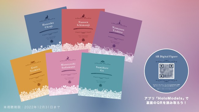 ◇スマートフォンでAR体験ブースへお越しいただいた方へ、AR機能で「とくびぐみ」の刀剣6振が見られるカード(各6種)も配布いたします。(視聴期限:2022年12月31日まで)