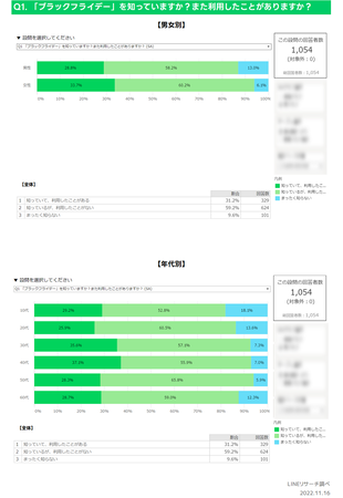 このたびLINEリサーチでは、日本全国の男女を対象に、「ブラックフライデー」の認知率や利用意向などについて調査しましたので、その結果をお知らせいたします。
