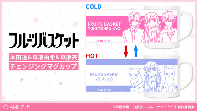 温度に反応する特殊なインクを使用しており、マグカップに温かい飲み物を入れると、草摩由希と草摩夾が動物姿に変化します。