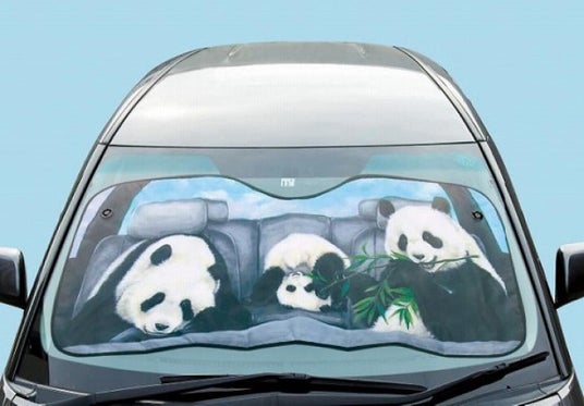 そのほか、ユーモアの車でのお出かけのお供におすすめのアイテムをご紹介パンダが、車内でのんびりお留守番してくれているような姿が楽しめるサンシェードです。