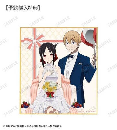 当商品をBOX、または単品にて1BOX相当数ご注文ごとに、予約購入特典として「描き下ろしイラスト 四宮かぐや&白銀御行 ミニ色紙 <かぐや バースデーver.> AMNIBUS限定特典」を付属いたします。