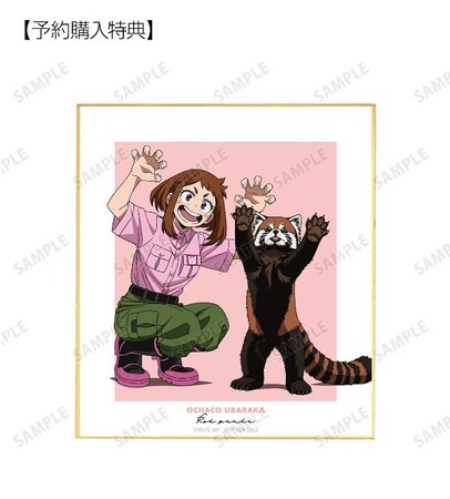 当商品をBOX、または単品にて1BOX相当数ご注文ごとに、予約購入特典として「東武動物公園コラボ 描き下ろしイラスト 麗日お茶子 飼育係ver. ミニ色紙 arma bianca限定特典」を付属いたします。