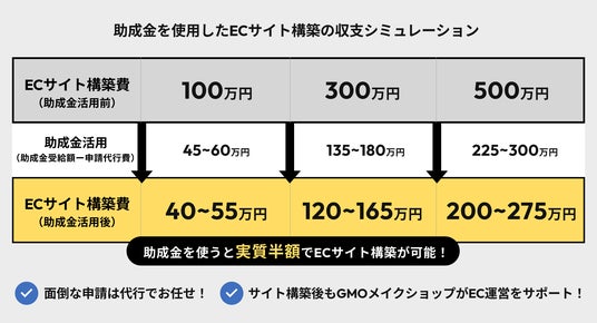 GMOインターネットグループのGMOメイクショップ株式会社(代表取締役社長CEO:向畑 憲良、以下、GMOメイクショップ)は、TRIPORT社会保険労務士法人(代表社員:岡本 秀興、以下 TRIPORT)と連携し、2024年8月15日(木)より、中小企業向けに最大680万円の助成金獲得のためのEC構築支援を開始しました。今回の対象となる「業務改善助成金」「働き方改革推進支援助成金」を受給するため、GMOメイクショップでECサイト構築やリニューアルを検討の事業者向けに、助成金申請の専門家による申請代行に関する無料の個別コンサルティングとセミナーを開催します。