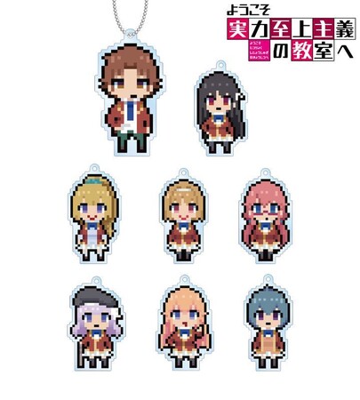 綾小路清隆、堀北鈴音、軽井沢恵、櫛󠄁田桔梗、佐倉愛里、坂柳有栖、一之瀬帆波、伊吹澪をアクリルキーホルダーに仕上げました。