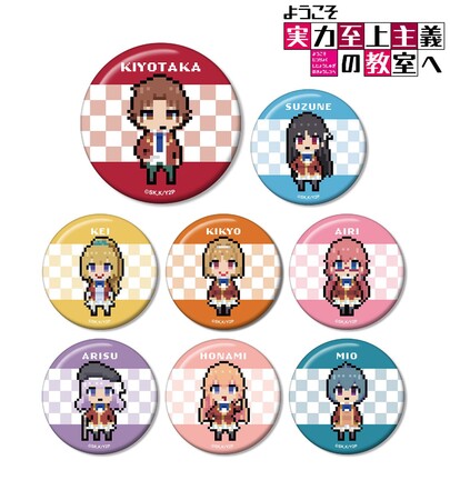 綾小路清隆、堀北鈴音、軽井沢恵、櫛󠄁田桔梗、佐倉愛里、坂柳有栖、一之瀬帆波、伊吹澪を缶バッジに仕上げました。