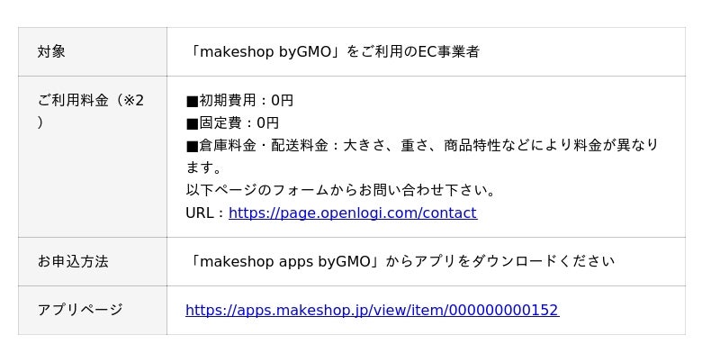 https://www.fulloutsourcing.jp/logistics/)を提供しております。「makeshopロジ byGMO」は、お客様から大変ご好評をいただいていますが、物流拠点には限りがあることから、すべてのEC事業者のご要望にお応えしきれないケースも生じており、「makeshop byGMO」ユーザーの一部では、「オープンロジ」を活用して物流業務の効率化、リードタイムの短縮、越境EC参入を図る事例も見られていました。