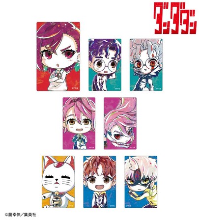 綾瀬 桃、オカルン、オカルン(変身)、白鳥 愛羅、白鳥 愛羅(変身)、ターボババア、円城寺 仁、円城寺 仁(変身)のデフォルメイラストを新たなタッチで魅力的に表現し、カードステッカーに仕上げました。