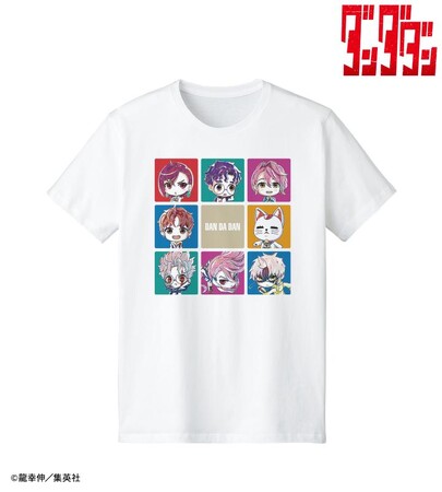 綾瀬 桃、オカルン、オカルン(変身)、白鳥 愛羅、白鳥 愛羅(変身)、ターボババア、円城寺 仁、円城寺 仁(変身)のデフォルメイラストを新たなタッチで魅力的に表現し、Tシャツに仕上げました。