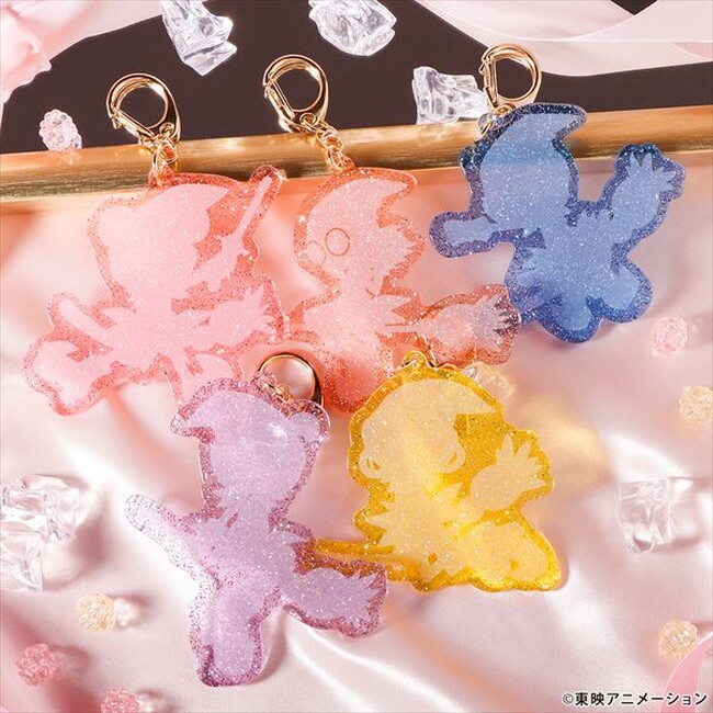 クリア素材にシルエットのデザインとラメが映える、キャラクターをイメージしたカラーリングのアクリルキーホルダー。