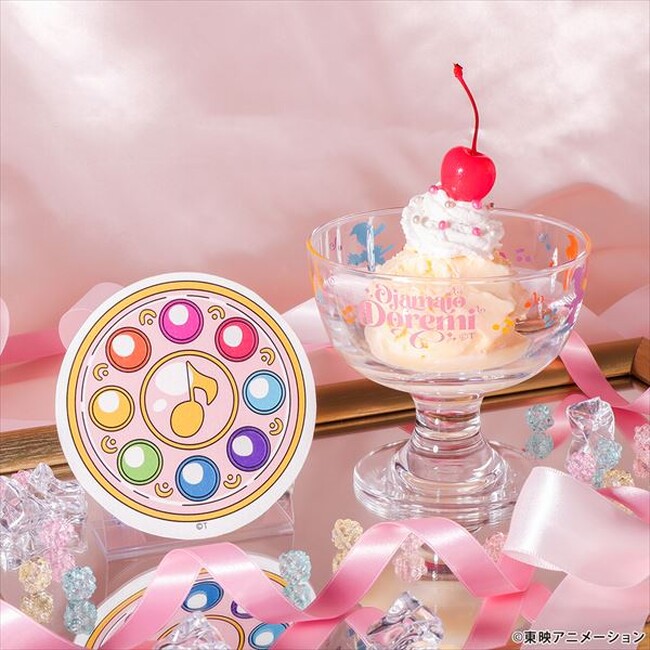 おジャ魔女たちのカラフルなシルエットと、音符が踊るようにぐるりとプリントされたサンデーグラス。