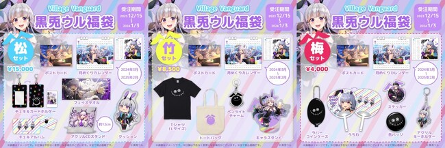 2023年12月15日(金)より、歌うマッドファーマシスト【黒兎ウル】とヴィレッジヴァンガードのコラボ福袋が発売決定!!とってもかわいいグッズがたっぷり詰まったお得な福袋!松、竹、梅の3タイプからお好きなものをお選びください♪2024年もウルさんと一緒に楽しい1年にしちゃいましょう!期間限定のオンライン受注販売のみになりますのでお見逃しなく~!