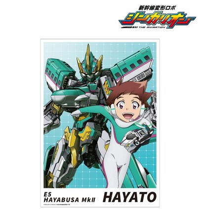 速杉ハヤトとE5はやぶさ MkII、男鹿アキタとE6こまち、大門山ツラヌキとE7かがやき、月山シノブとE3つばさ、清洲リュウジとドクターイエロー、発音ミクとH5はやぶさ、大空レイと800つばめ、セイリュウとブラックシンカリオン 紅をA3サイズのマット加工されたポスターに仕上げました。