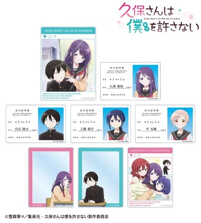 久保 渚咲、白石 純太、工藤 葉月、平 玉緒、久保 明菜、久保 沙貴を学生証風、フレーム、SNS風の3種の絵柄で楽しめるアクリルカードに仕上げました。