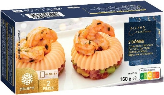 (160g・2個入)彩り野菜のコンフィをベースに、オマールクリームを重ね、エビをトッピング。エレガントなドーム型で仕上げた、華やかで軽やかな前菜です。解凍するだけで、特別なひと皿が完成します。