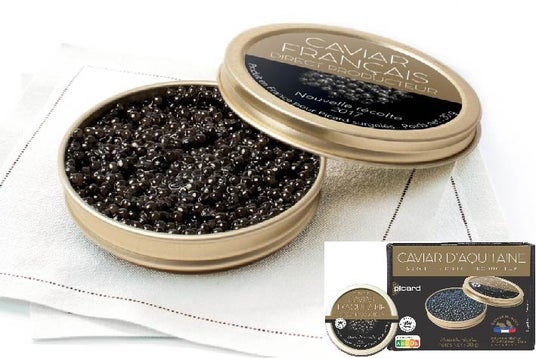 (30g) フランスで養殖されたチョウザメのキャビアです。ブリニやサワークリーム、レモンを添え、シャンパーニュや白ワインとともに楽しむ贅沢な前菜です。