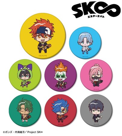 レキ、スノー、MIYA 、シャドウ、Cherry blossom、ジョー 、愛抱夢、菊池がちょこんと立っているちびキャラを新たに描き起こし、マットな手触りの缶バッジに仕上げました。