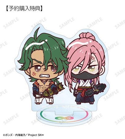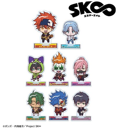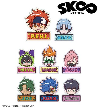 レキ、スノー、MIYA 、シャドウ、Cherry blossom、ジョー 、愛抱夢、菊池がちょこんと立っているちびキャラを新たに描き起こし、アクリルスタンドに仕上げました。