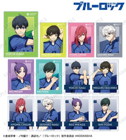 潔 世一、蜂楽 廻、千切 豹馬、凪 誠士郎、御影 玲王、糸師 凛の描き下ろしイラストをアクリルカードに仕上げました。