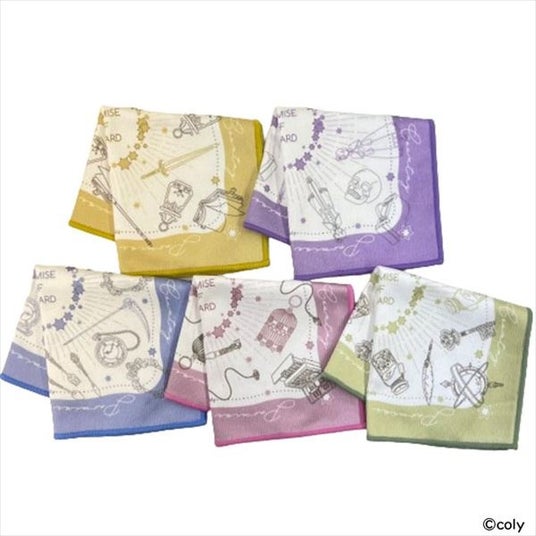 タオルハンカチ 全5種 販売価格:各種1,100円(税込)国ごとに魔道具のイラストが入ったタオルハンカチ。細かいところまで綺麗にプリントされています。