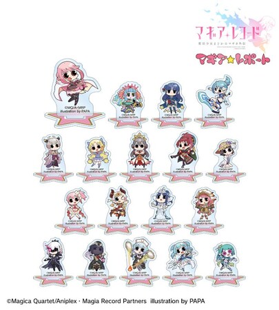 環いろはアニメver、ウワサのさな、七夕やちよ、波乗りさやか、里見那由他、出涸嵐マナ、初日の出静香、ドッペル杏子、水着黒江、水着まどか、おとぎ話みふゆ、おとぎ話やちよ、氷室ラビ、常闇仮面、常闇淑女、瀬奈みこと、水波レナアニメver.、ウワサの鶴乃アニメver.のイラストをミニアクリルフィギュアに仕上げました。