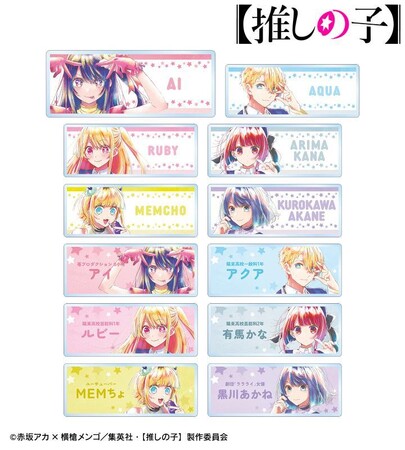 アイ、アクア、ルビー、有馬かな、MEMちょ、黒川あかねのイラストを新たなタッチで魅力的に表現し、アクリルネームプレートに仕上げました。