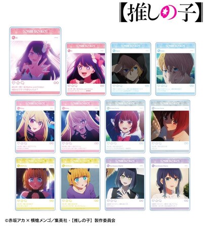 アイ、アクア、ルビー、有馬かな、MEMちょ、黒川あかねの印象的なシーン、作中の印象的な台詞をアクリルカードに仕上げました。