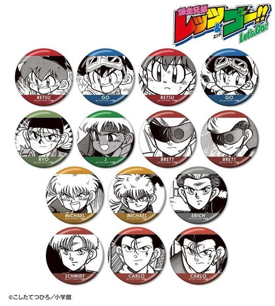星馬 烈、星馬 豪、鷹羽 リョウ、J、ブレット・アスティア、ミハエル・フリードリヒ・フォン・ヴァイツゼッカー、エーリッヒ・クレーメンス・ルーデンドルフ、シュミット・ファンデルハウゼン・フォン・シューマッハ、カルロ・セレーニの原作コマイラストをメタリック仕様の缶バッジに仕上げました。