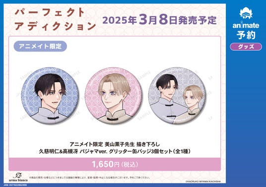 ▼アニメイト限定 美山薫子先生 描き下ろし 久慈明仁&高槻冴 パジャマver. グリッター缶バッジ3個セット(全1種)