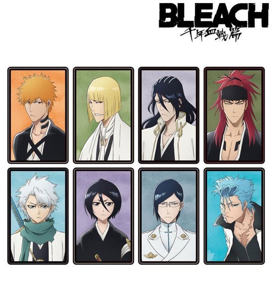 黒崎一護、平子真子、朽木白哉、阿散井恋次、日番谷冬獅郎、朽木ルキア、石田雨竜、グリムジョー・ジャガージャックのイラスト、キャラクターの情報をプラスチックカードに仕上げました。