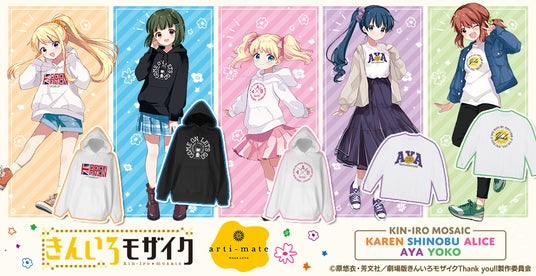 株式会社アルマビアンカはアニメイト池袋本店4F、 秋葉原1号館3F、渋谷「Space A la mode」にて、『きんいろモザイク』から「arti-mate」のオリジナルアパレル、雑貨を限定販売いたします。