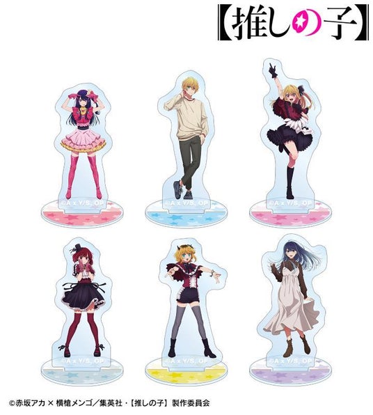 アイ、アクア、ルビー、有馬かな、MEMちょ、黒川あかねのイラストをミニアクリルスタンドに仕上げました。
