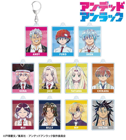 アンディ、出雲風子、シェン、ジーナ、ジュイス、タチアナ、重野力、ムイ、ビリー、リップ、ヴィクトルのイラストを新たなタッチで魅力的に表現し、アクリルキーホルダーに仕上げました。