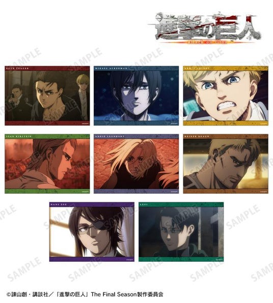 エレン、ミカサ、アルミン、ジャン、アニ、ライナー、ハンジ、リヴァイの印象的なシーン、キャラクターの名前をブロマイドに仕上げました。
