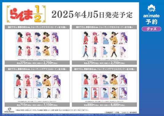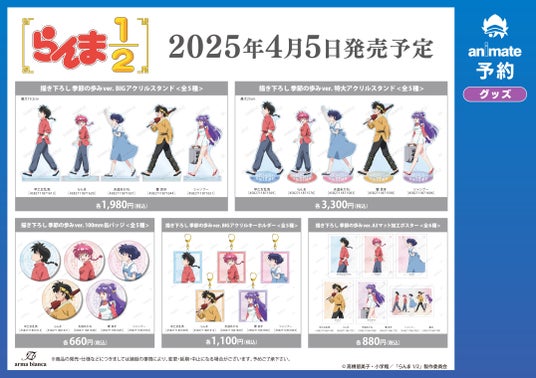 漫画・アニメのオリジナルグッズを販売する株式会社アルマビアンカはTVアニメ「らんま1/2」アニメイトフェアを実施いたします!漫画・アニメのオリジナルグッズを販売する株式会社アルマビアンカ(本社:東京都中野区、代表取締役:坂井智成)は、この度、TVアニメ「らんま1/2」アニメイトフェアを実施いたします。