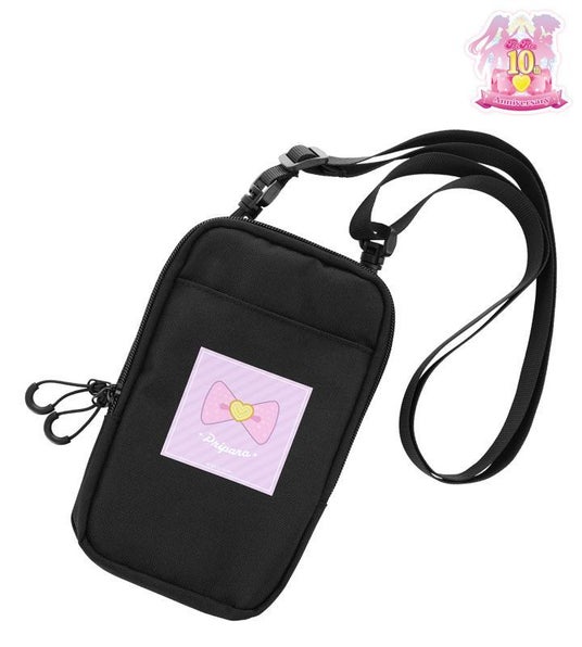 真中らぁらのマイクのリボン部分の描き起こしモチーフイラスト、作品タイトルをマルチスマホポーチに仕上げました。
