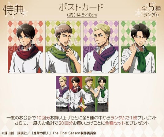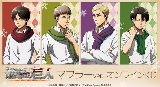 漫画・アニメのオリジナルグッズを販売する株式会社アルマビアンカは、2月14日(金)よりTVアニメ『進撃の巨人』 マフラーver. オンラインくじを販売いたします!