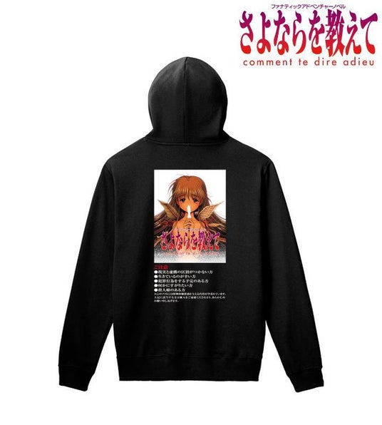 作品ロゴ、パッケージイラスト、注意書きをパーカーに仕上げました。