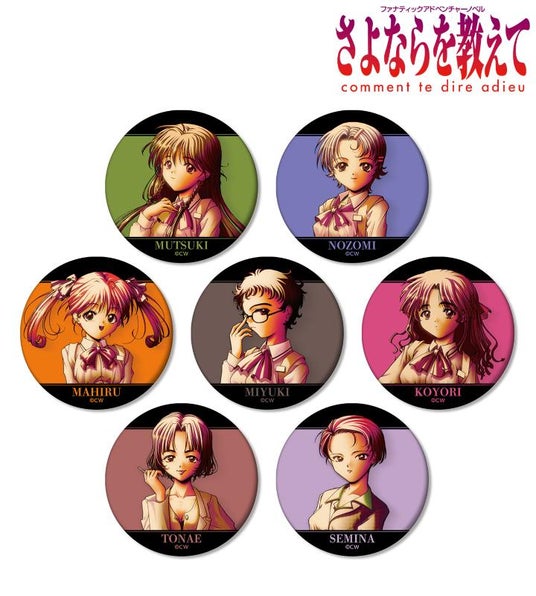 巣鴨睦月、高田望美、田町まひる、目黒御幸、上野こより、大森となえ、高島瀬美奈の立ち絵イラストをマットな手触りの缶バッジに仕上げました。
