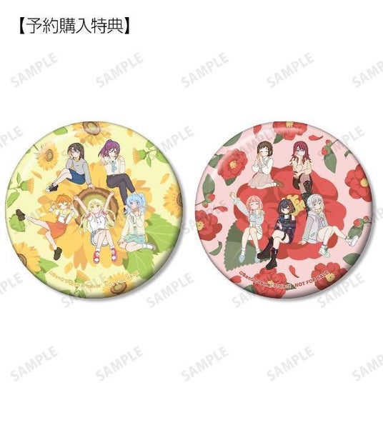 各メンバーのイラストをボタニカルデザインに落とし込んで繊細なタッチで新たに描き起こし、BIGな缶バッジに仕上げました。
