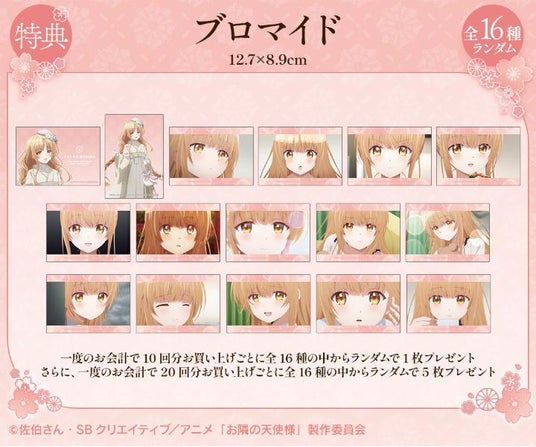 一度のお会計で10回分ご購入ごとに特典ブロマイド(全16種)の中からランダムで1枚、20回分ご購入ごとに5枚をプレゼント!