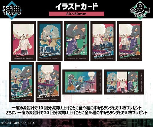 一度のお会計で10回分ご購入ごとに特典イラストカード(全9種)の中からランダムで1枚、20回分ご購入ごとにランダムで5枚プレゼント!